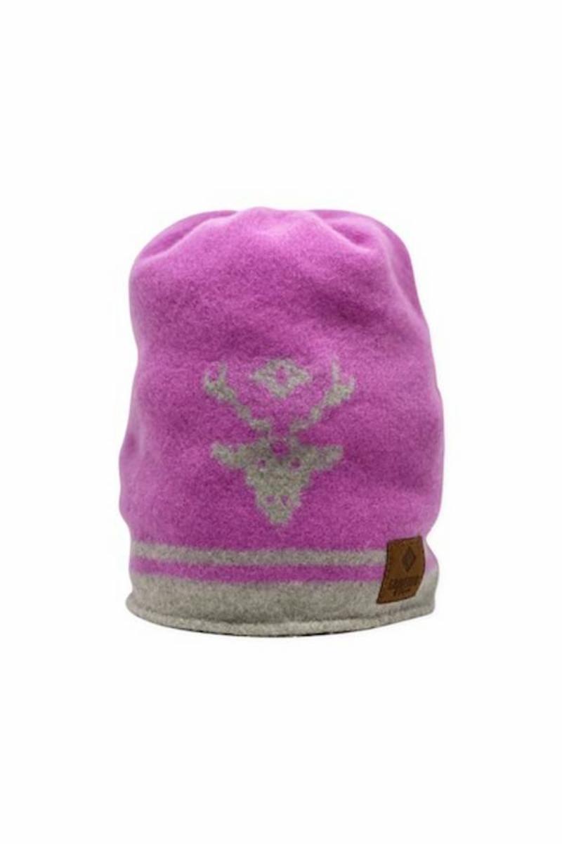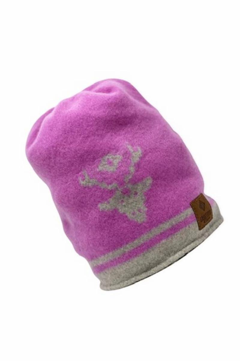 Myk barnelue i 100% merinoull, som er lett tovet. Passer barn 2-7 år. Former seg etter hodet til barnet. Motiv av reinkalv. En varm lue som sitter godt på.