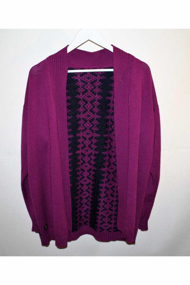 Cardigan strikket i 100% myk merinoull. Kan brukes til omtrent alt da den er ensfarget og kun har mønster bak.