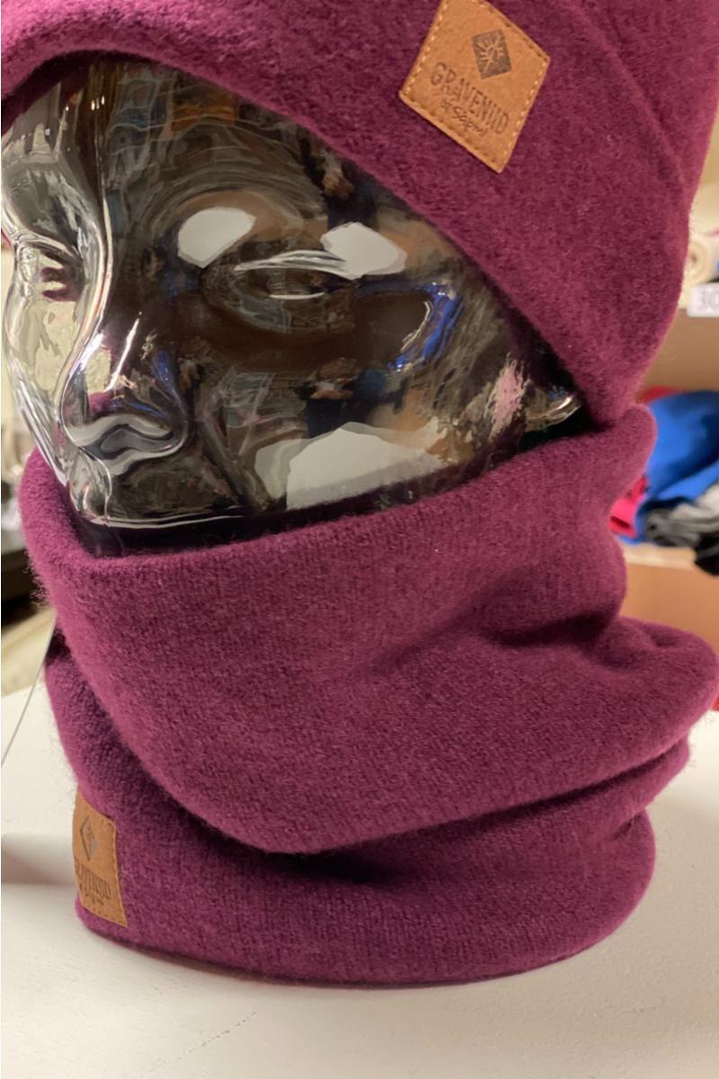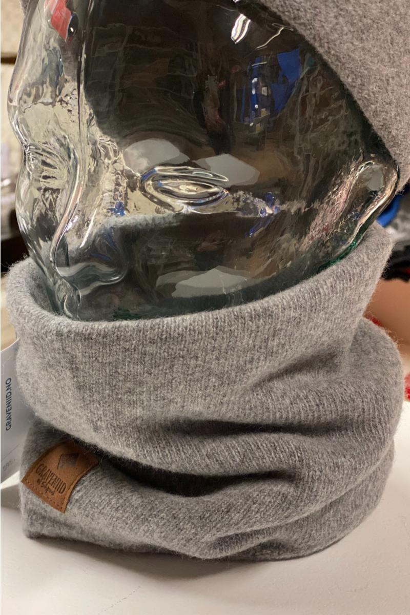Myk hals i 100% merinoull som er lett tovet. Onesize. Unisex. Graveniid-logo nederst. Kan brukes dobbel eller dras ut i full lengde, på bildet er den dobbel.