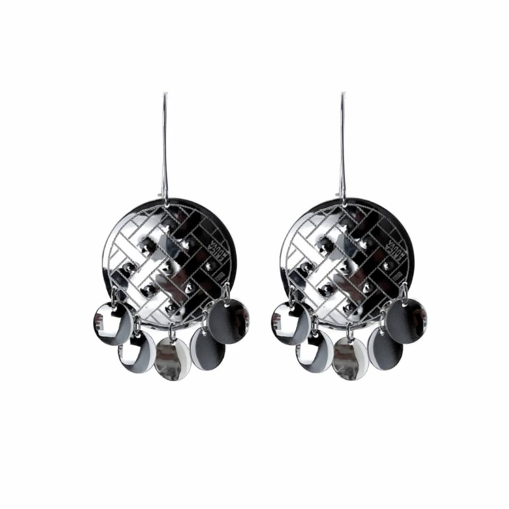 Örhängena är graverade med fläta mönster som är av sydsamisk gravyr tradition.