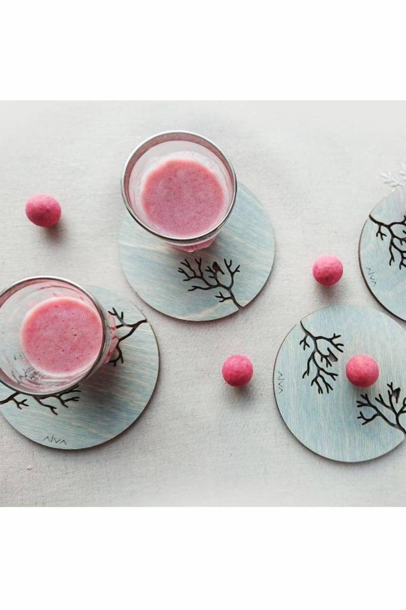Nydelige brikker / underlag for kopper og glass, av bjørk.
