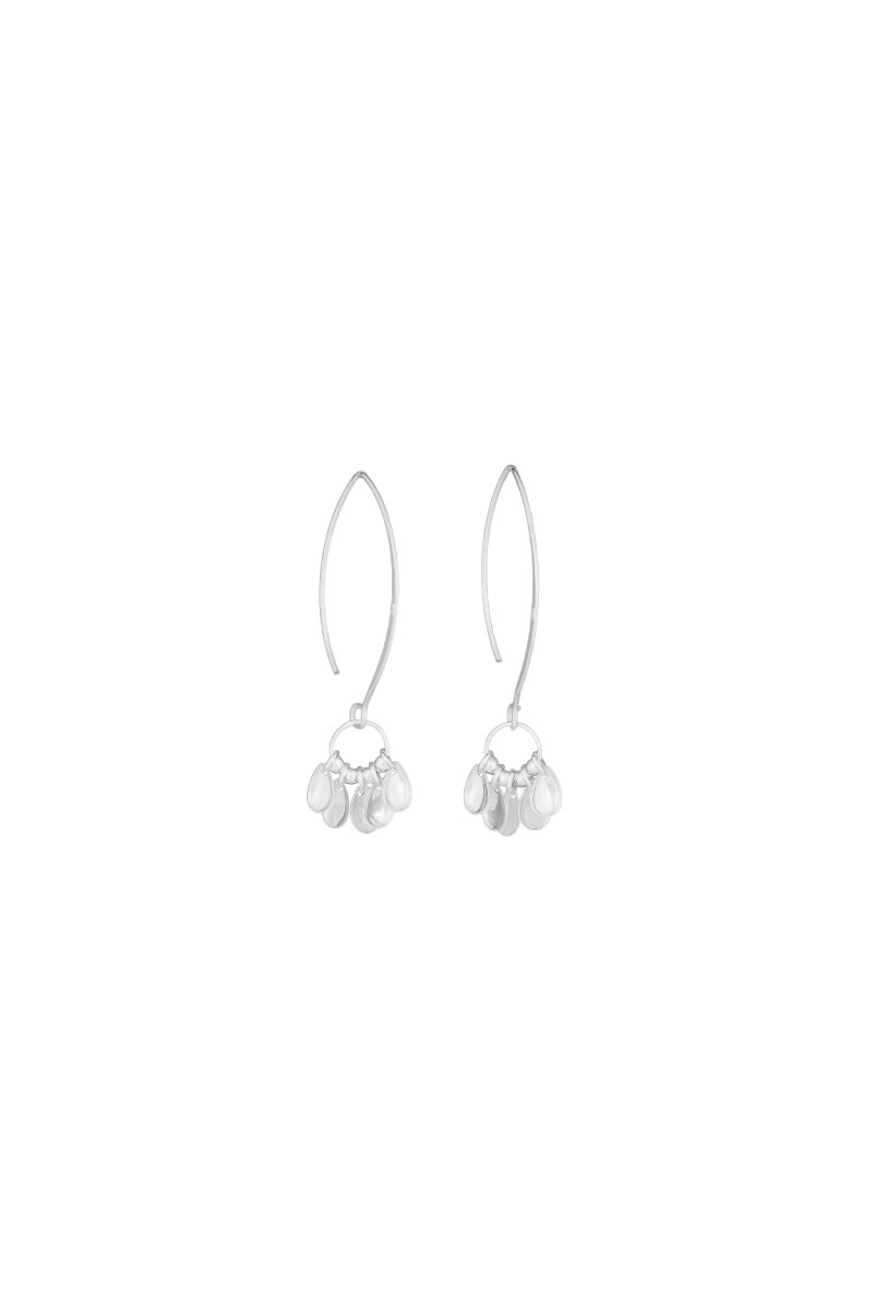 Lang ørekrok ring med sølvkuler og dråper