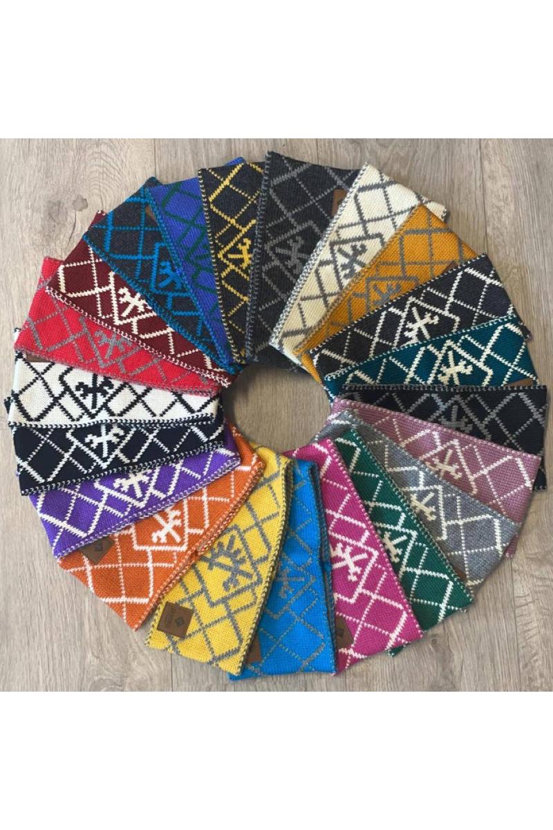 Pannebånd strikket i 100% merinoull. Bredde ca 11 cm (Bredde L og XL pannebånd ca 12 cm). Pannebåndet er ikke strikket i samme garn som luer og buff, fargenyansene i samme farger vil derfor variere noe.